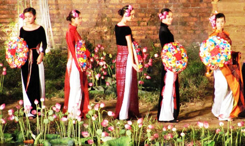 “Ao Dai Festival” is one of the key events at the Hue Festival. This year, inspired by lotus, designers made their ao dai with lotus patterns and used environmentally friendly materials. There were several different kinds of ao dai for men, women and kids.